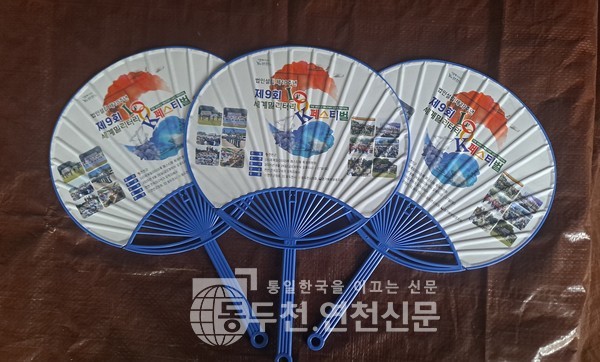 [연천=엄우식 기자][단독] 제9회 세계밀리터리룩 페스티벌(이사장 백호현 ,명예위원장 김성원) 군 문화축제가 연천 전곡리구석기 유적지에서 26일부터 27일까지 2일 동안 개최되는 동안 본 위원회가 만들어 배포했던 홍보용 부채가 방문객들로부터 큰 인기를 끌었다.